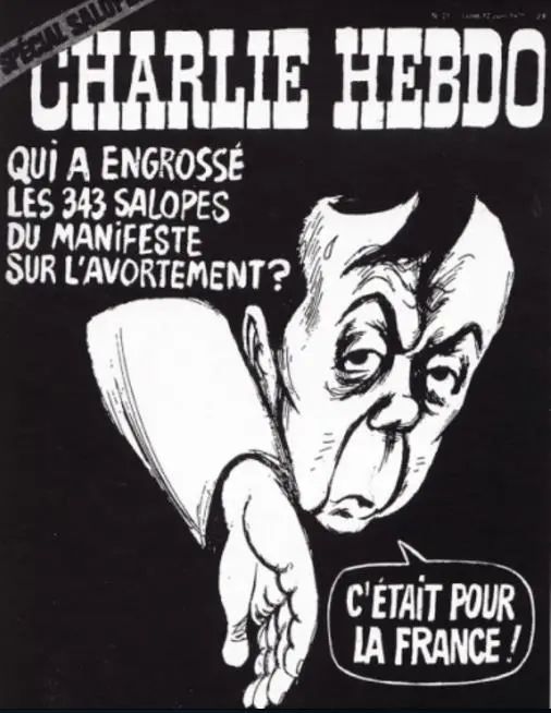 从1968年开始兴起的激进左翼力量在这股东风中结成了争取堕胎权的同盟,而宗教保守势力和右翼政治家则狂怒地咒骂签署宣言的女人们。在法国人的集体记忆中,《343宣言》有一个更惊世骇俗的名字——“343个荡妇的宣言”(Manifeste des 343 salopes)。这个名字来自于《查理周刊》上的一副漫画《是谁让这343个荡妇怀孕的?》,意在讽刺保守派的荡妇羞辱和德勃雷的生育至上主义。