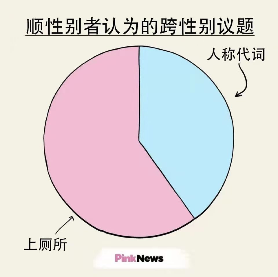我们认为,跨性别者不被理解,同时在厕所问题及其他公共权益问题上受到排挤歧视的根源是父权制下异性恋中心的性别二元论,也即 异性恋矩阵 [1]。在二元论的视角下,跨性别者(以及其他所有人)都只能按照指派的生理特征对应的二元性别规范行事,在此之外的选择和需求都是无法理解,不被言说的(一言以蔽之,“怎么可能既不做男人,又不做女人呢?”)这一背景下,争论跨性别女性们(此处跨性别男性再一次被忽略了)是否“侵犯”了“女性”的生存空间,把厕所问题变成“顺女”和“跨女”互相扯头花,只会让真正的元凶隐身——无论是被性化和窥视的女体,还是不被任何一个厕所接纳的跨性别,都无法通过掩盖另一议题解决自身的症结,它们不是针锋相对的矛盾,而是同一问题的一体两面。