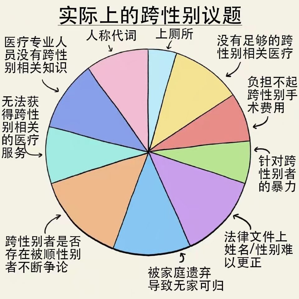 一年过去了,互联网舆论仍然纠结跨性别者怎么上厕所。但主流大众,包括其它性少数群体,在争议之外仍然对跨性别者缺乏了解。讨论跨性别者相关议题之前,至少应该了解跨性别群体的实际生活状况——否则关于跨性别社会空间议题上的争论大多只会是毫无意义的纸上谈兵。比如,跨性别者实际在意的议题包括医疗、心理健康、性别暴力、就业等方面,但大众以及其它性少数群体能够“看到”并自以为理解的跨性别议题只有上厕所(甚至连这一议题都被想当然地替换成“顺直男女装偷拍”)。