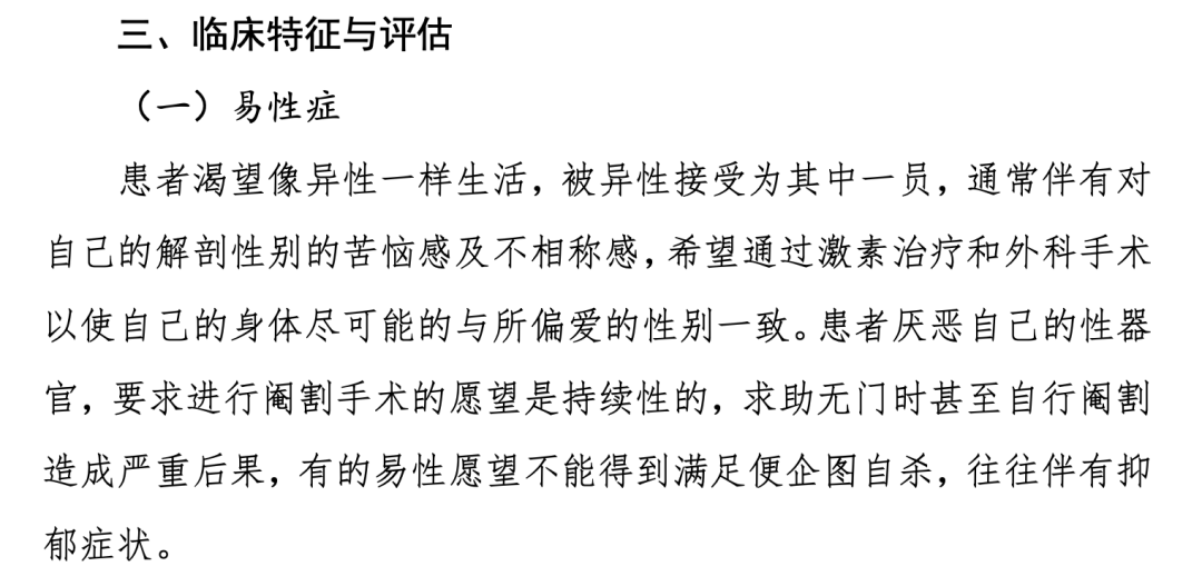 中国《精神障碍诊疗规范(2020)》对“易性症”的描述