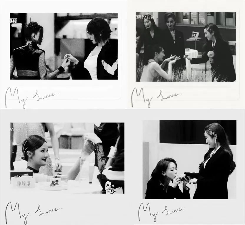 **郭采洁 &赵梦 ** 给我的感觉是girl crush,我觉得这种一见钟情怦然心动式的感情在发展时期总是很甜蜜的,对彼此有最高的关注和最靠前的优先级。