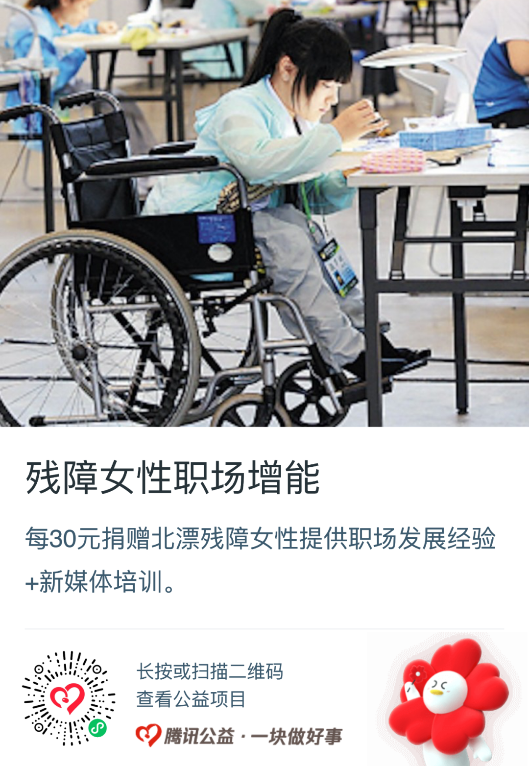 为 北漂残障女性 提供 职场发展经验+新媒体培训 执行机构:北京市通州区乐益融社会工作事务所 收款机构:中华社会救助基金会