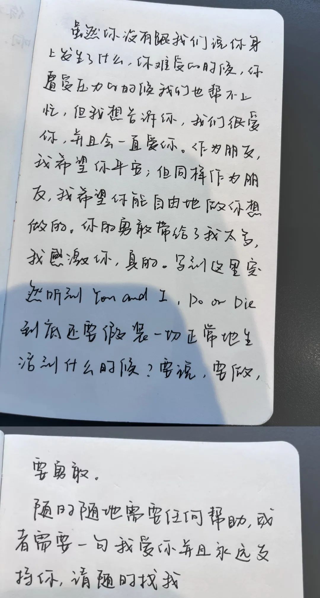 我记得在5月16号的下午,我正在床上掉眼泪,突然收到一位在香港的朋友发来的手写信的照片。总之,我的朋友,我爱你。
