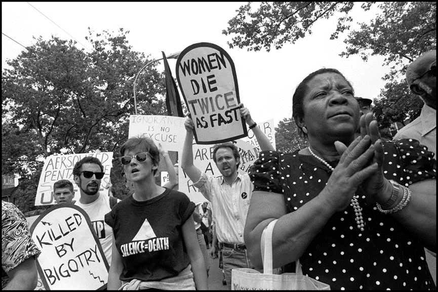 舒尔曼认为, ** 类似“阻止教会”行动的直接对抗运动,无意中使同化主义(assimilationist)的同性恋权利议题(如结婚和参军的权利)看起来更容易接受。 ** 如果说对抗是 ACT UP作为一个致力于直接行动的组织的使命的一部分,那也很容易理解为什么该组织最后分崩离析,他们在 ** 谁有资格“上桌” ** 的问题上也出现了冲突。1992 年,当致力于加强HIV&AIDS研究的“治疗与数据(T&D)委员会”从ACT UP中分离出来,成为自主的非营利组织时,一些成员质疑T&D活动家是否实际上一直在利用他们与CDC和安东尼·福奇的联系帮助女性艾滋感染者,或者T&D的胜利是否更多地围绕舒尔曼所说的 ** “道德渗透系统” ** (ethical trickle-down system), ** 该系统最终将使所有艾滋感染者受益,即使早期受益者主要是有钱有势的白人男性。 ** 舒尔曼没做出孰是孰非的判断,而是引用了《纽约时报》在2019 年的一篇文章,其中指出“在全世界3500 万艾滋病毒感染者中,女性占比略高于半数,并且该病毒是育龄女性死亡的主要原因。” 此外,女性“在治疗试验中的占比中位数为 11%”,在抗逆转录病毒药物试验中占比 19%。 ** 在治疗的可及性方面仍然存在性别鸿沟。 ** 如果人们知道,舒尔曼所指出的“截至2001年,纽约ACT UP中几乎所有HIV阳性的女性,除了一名已确认的幸存者外,都已经死亡”,那么艾滋病是一个女权主义问题就显而易见了。