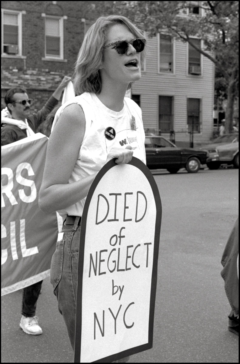 ACT UP最有影响力的领导人之一是玛克辛·沃尔夫(Maxine Wolfe),她是左翼和女权主义组织团体的资深成员,其中包括“种族平等会议”(CORE)和“反对种族主义、反犹主义、性别歧视和恐同联盟”(CRASH)。因为异性恋女权主义者对所谓“女同性恋分离主义” ** [4] ** 感到恐慌,沃尔夫和舒尔曼一起被赶出了“堕胎权和反绝育滥用委员会”(CARASA)。快进到80年代初,沃尔夫发现自己与那些拒绝参与应对艾滋病新问题的女同性恋者存在分歧。