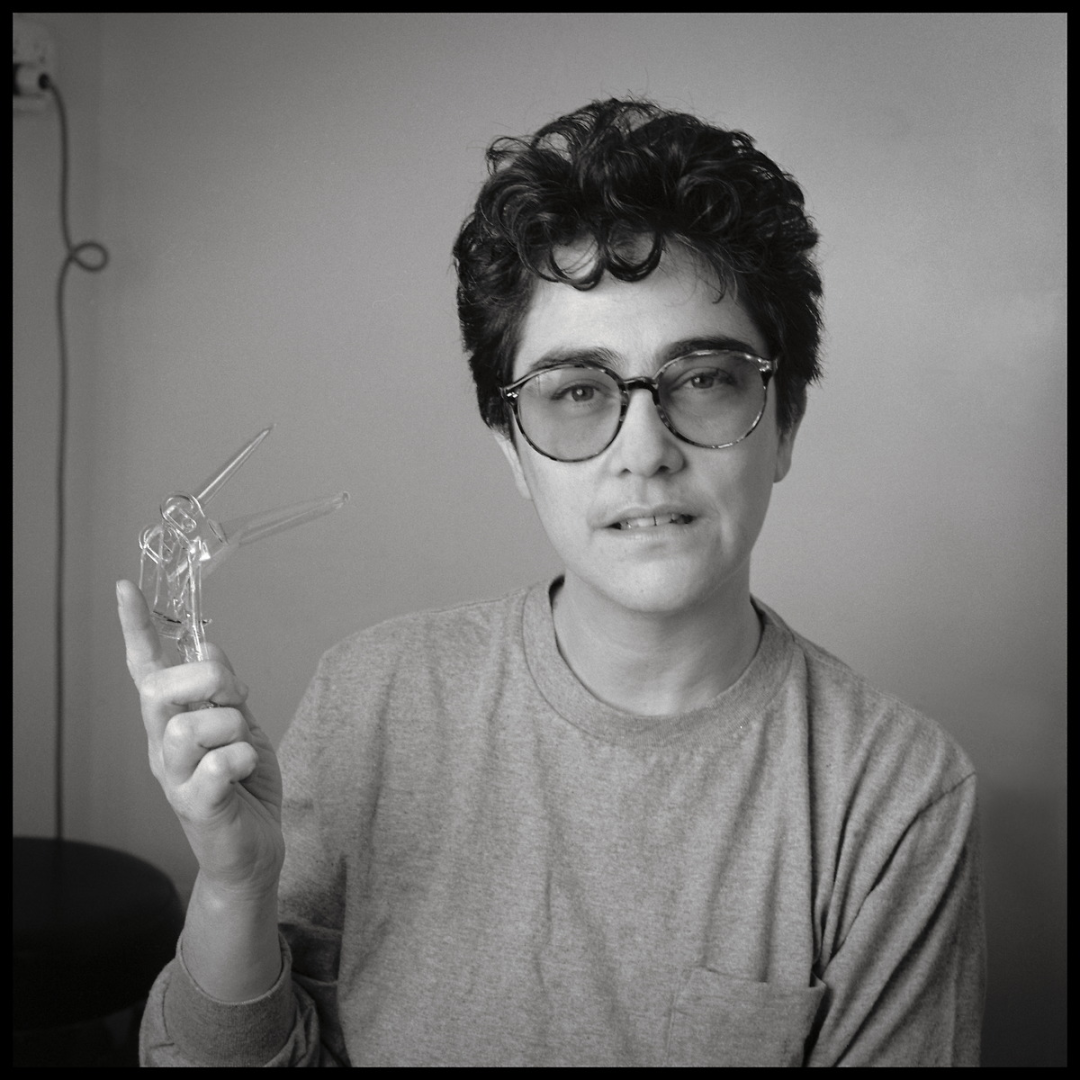 里萨·德南伯格(Risa Denenberg)在展示阴道窥器(speculum)