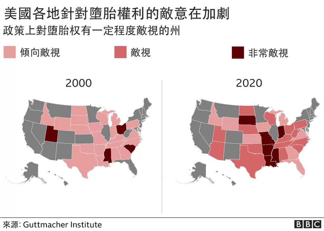 [8] 保守派占多数的美国最高法院在2022年推翻了罗诉韦德案,美国女性的堕胎权不再受宪法保护,而是由各个州自行决定。这意味着,近一半的州将重新对堕胎权进行限制甚或禁止。