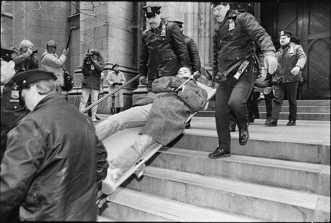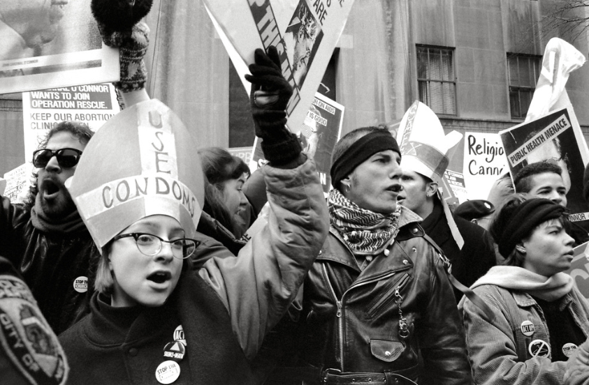 感谢左翼女权主义组织者的帮助,ACT UP在 80 年代末就已经装备了交叉性理论框架(intersectional framework),大约就在柏莉·坎秀(Kimberlé Crenshaw)创造这个术语的同时。尽管一些 ACT UP 成员一头扎在他们的行动主义上,但舒尔曼反复强调,ACT UP中有很多人认为他们参与的是同一场战斗,特别是涉及身体自主权和医疗护理权方面。 ** 事实上,堕胎权利组织“女性健康行动和动员”(WHAM!)与ACT UP共同发起了最著名的直接行动之一,即在圣帕特里克大教堂举行的“制止教会”(Stop the Church)示威活动。 ** 1989 年 12 月 10 日,面对奥康纳红衣主教及其恐同、厌女和普遍敌视的影响,ACT UP和WHAM!在弥撒期间冲进了教堂。舒尔曼指出,这次行动的成功得益于与行动和方法结合的集体领导,“艾滋病是混乱的”,她写道,“那些被艾滋病防治斗争所吸引的人都是反传统的。”