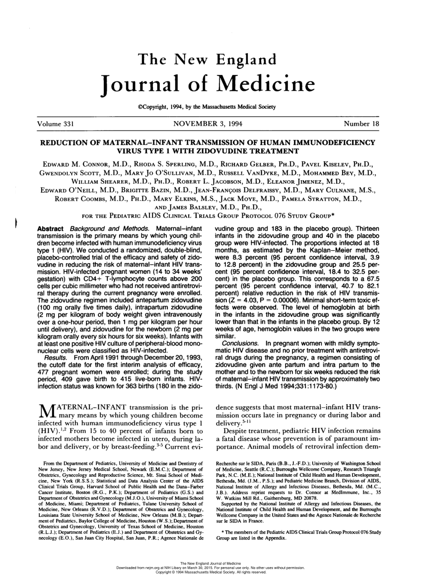 编者注:076号实验的结果最终在1994年发表于新英格兰医学杂志(doi:10.1056/NEJM199411033311801),结果表明AZT可将HIV的母婴传播风险降低67.5%