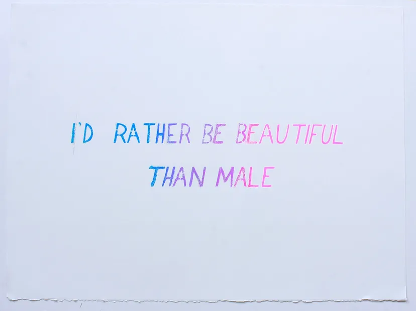 ** [15] ** 图上的字意为“比起做男性,我选择美丽”。