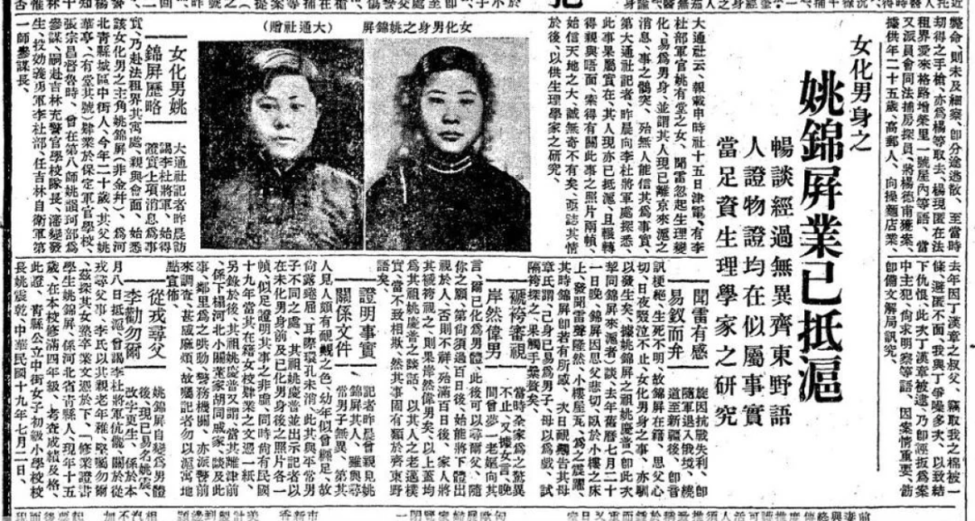在史料中,跨性别被称为“男化女”“女化男”,这种称谓一直延续到民国。在古人的认识中,这与人与动物、动物与动物、矿物与动物等的变形类似,都是国家政治变化的预兆,历代史官也将“性别改变之事”记录在史书中,历来大多认为这是一种不祥之兆。明清的文人笔记中也有许多“性别变化”的轶闻和小说。史料中有关跨性别者的记叙是十分普遍的,尽管古人的认识不及今天科学,这样普遍的记录背后存在着一定的真实性,而非简单的虚构。民国时期的新闻中也有着跨性别者的记录。