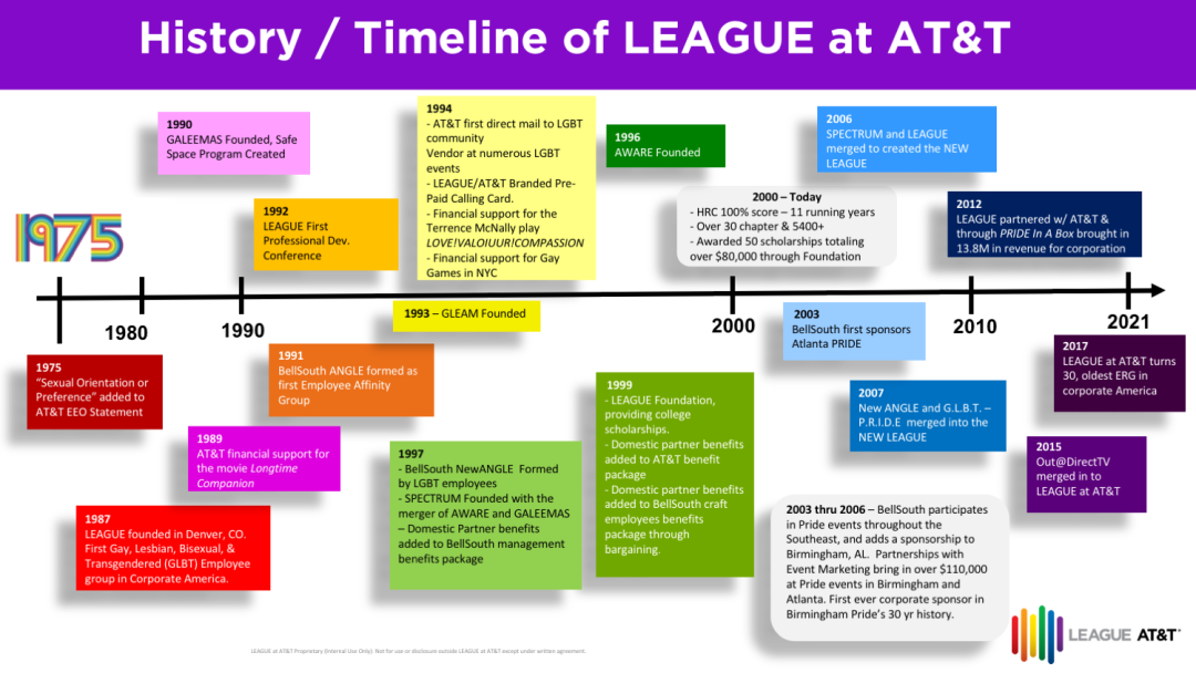AT&T的LGBTQ+员工资源小组LEAGUE的历史发展时间线