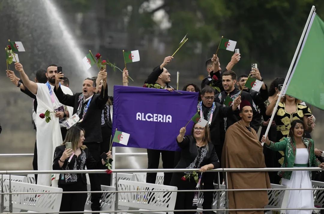 阿尔及利亚代表团与塞纳河中的玫瑰花 © AP/Morry Gash