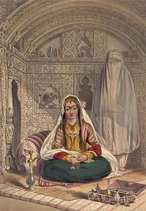 ** [49] ** 译注:Harem,本意为禁止之地,神圣密室。起源于近东,包括阿拉伯帝国的倭马亚王朝与阿拔斯王朝、伊朗的萨法维王朝、印度的蒙兀儿帝国与土耳其的奥斯曼帝国等皇室。并通过奥斯曼帝国传入西方世界。指在一夫多妻制环境下的女性以及未成年儿子的居住场所,禁止成年男性进入。(见Wikipedia)