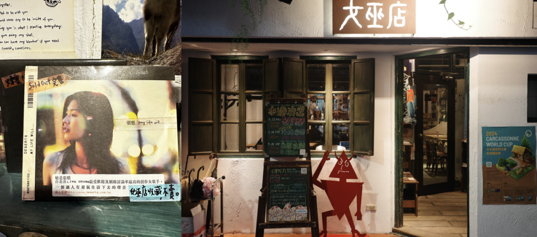 女书店的隔壁就是女巫店。 喜欢台湾独立音乐的人一定绕不开这个地方, 陈绮贞,吴青峰,安溥,陈珊妮等人都从这间小小的,不起眼的酒吧中走出。