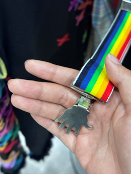 古着店内的彩虹配饰(左)和西门町周边街巷的彩虹旗帜(右)