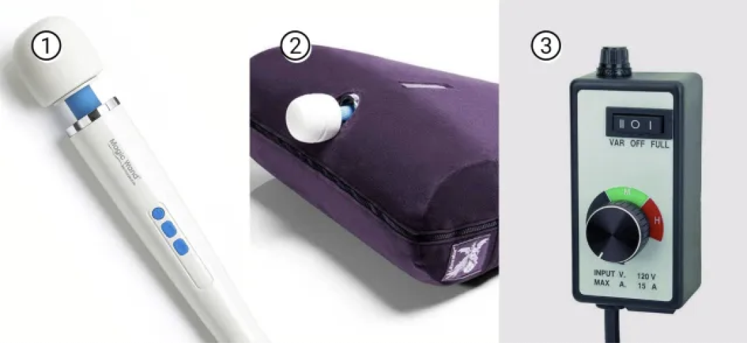 1 / Hitachi Magic Wands (震动按摩器) 2 / Axis Toy Mount (玩具固定支架) 3 / Speed