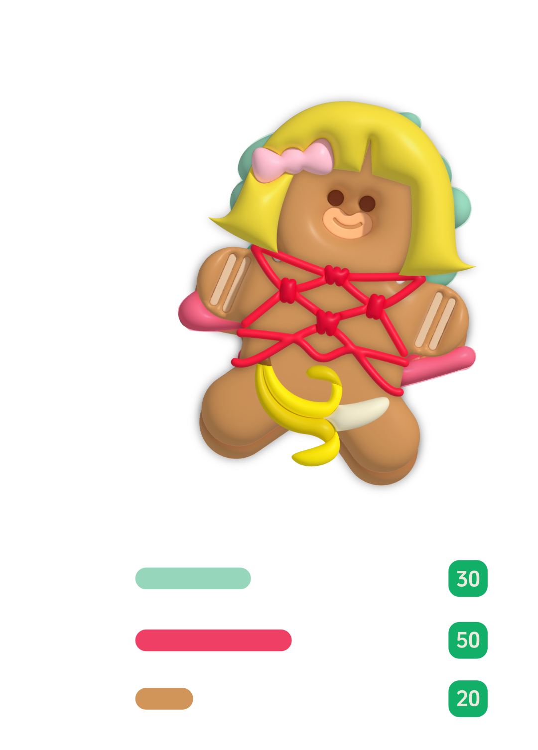 和人类一样,小姜饼人也会在出生时被基于身体特征指派一个“果味区别”,其实呢,就是看看是有“木瓜”还是“香蕉”。当然!这种身体特征也可能居于两者之间~