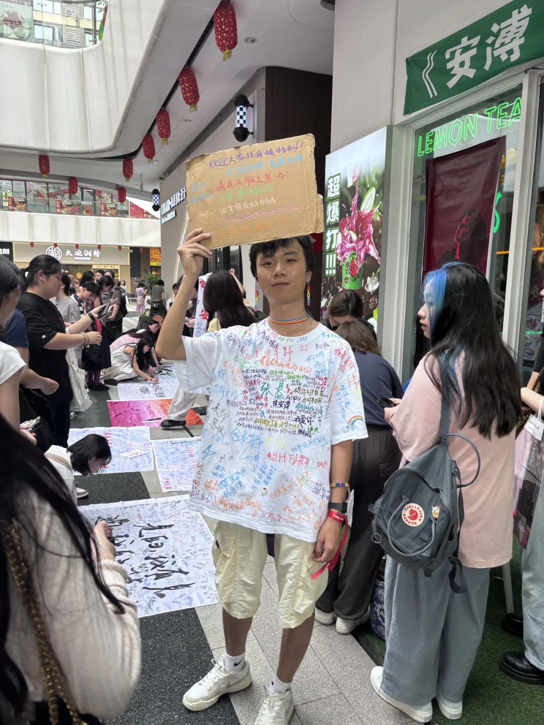去看一场时寐演唱会会是我人生中最高光的时刻。会有人开玩笑说,安溥演唱会上都是男同女同。虽然有夸大的成分,但我确实在演唱会上遇到了很多性多元的朋友们,我们制作物料、交换、握手、拥抱。我穿着一件白色的短袖,来往的朋友留下了友善的话语。当然,可能最「不友善」的一句话是,有朋友写了一句「顺直去死」。