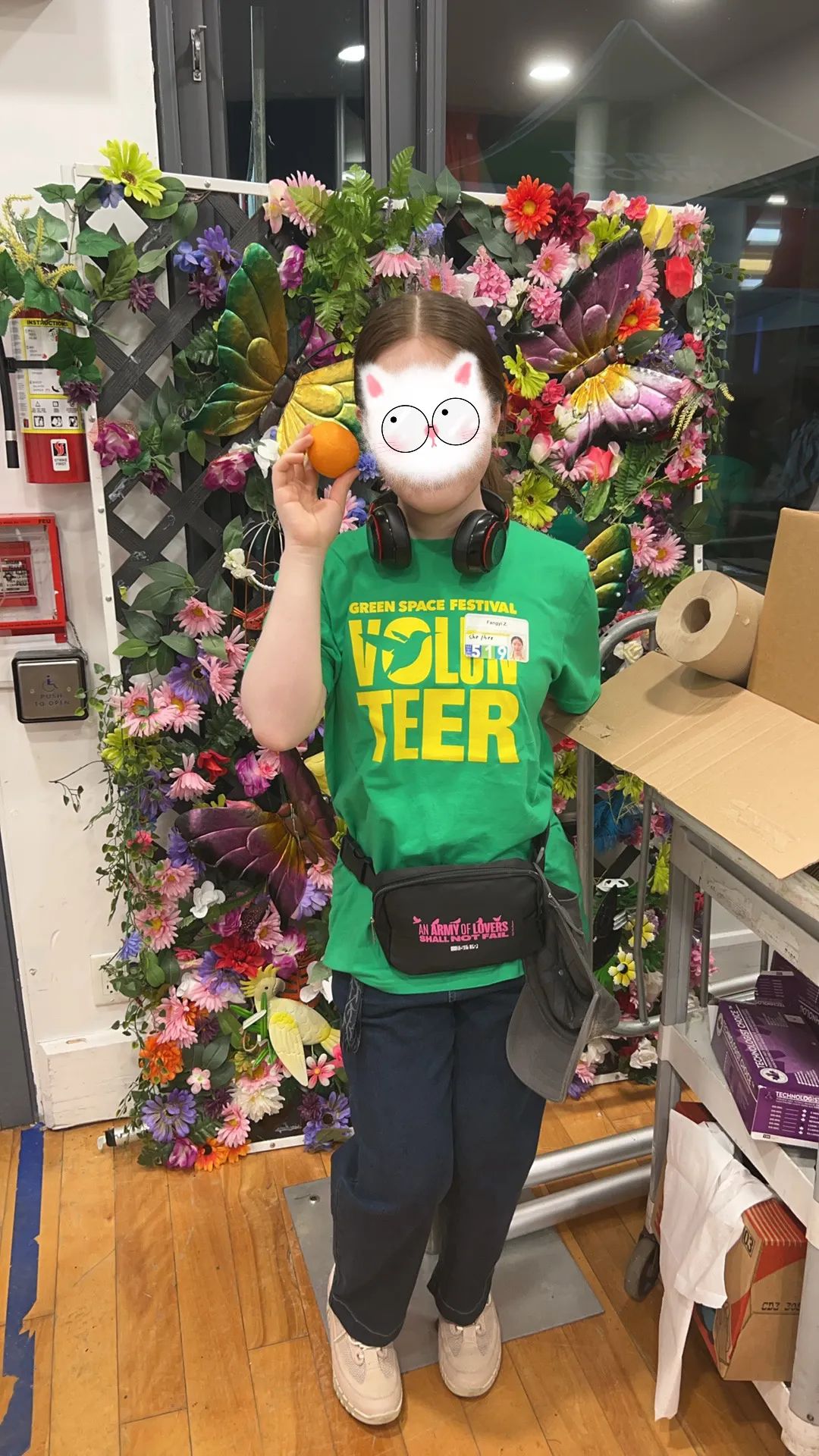 这张照片是我在The 519六月底的 Green Space Festival 做吧台志愿者时拜托同一组伙伴帮忙拍的。我不喜欢在社交媒体上露脸,所以果断猫头滑走
