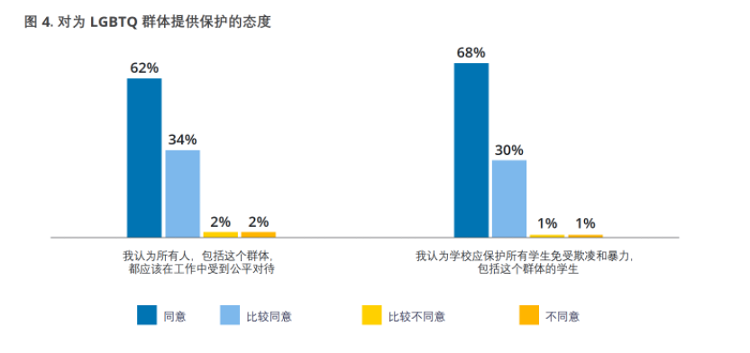 然而,中国的发展也体现出独特性。与西方国家普遍采取的“权利优先”路径不同,中国更倾向于采取“去病理化”与社会认知改变并行的策略。作为人口大国,中国在推动相关进展时既面临复杂性挑战,也具备推动变革的潜在优势。在就业歧视、校园霸凌等重点领域,形成了一些积极的社会共识。这为建立针对性的保护机制提供了良好基础。在威廉姆斯研究院关于多元性别群体的调查中,大部分中国受访者同意多元性别群体应当在工作中和所有人一样受到公平对待,也应当免于遭遇校园欺凌和暴力。未来的发展需要在借鉴国际经验的同时,更多地关注本土实践创新,探索符合中国国情的发展路径。