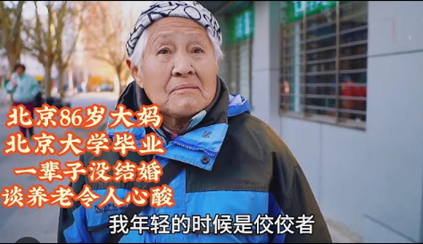 2024年12月28日,一位86岁不婚奶奶接受抖音博主“北京大明”采访的视频引发关注。视频中,这位白发苍苍的老奶奶精神矍铄,回顾了自己辉煌的职业生涯:从北大化学系毕业后,她成功攻克“稀有元素的分离提纯”难题,荣获科技二等奖,为国家星火计划做出贡献。因全身心投入工作,她不婚、无子女,目前与妹妹共同生活。然而,随着妹妹的丈夫失能,妹妹无暇顾及她,期待她能搬走,她无奈地表示“无路可走”。网友对此看法各异,有人表示同情,也有人认为她“咎由自取”,不过多数人称赞老奶奶的职业成就,认为女性价值不应以婚姻和家庭为衡量标准。
