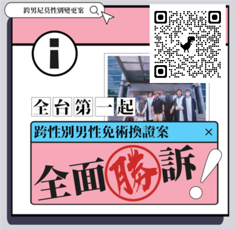 台湾地区:跨性别者申请女变男无手术证明遭拒兴讼, 法院判决胜诉可变更