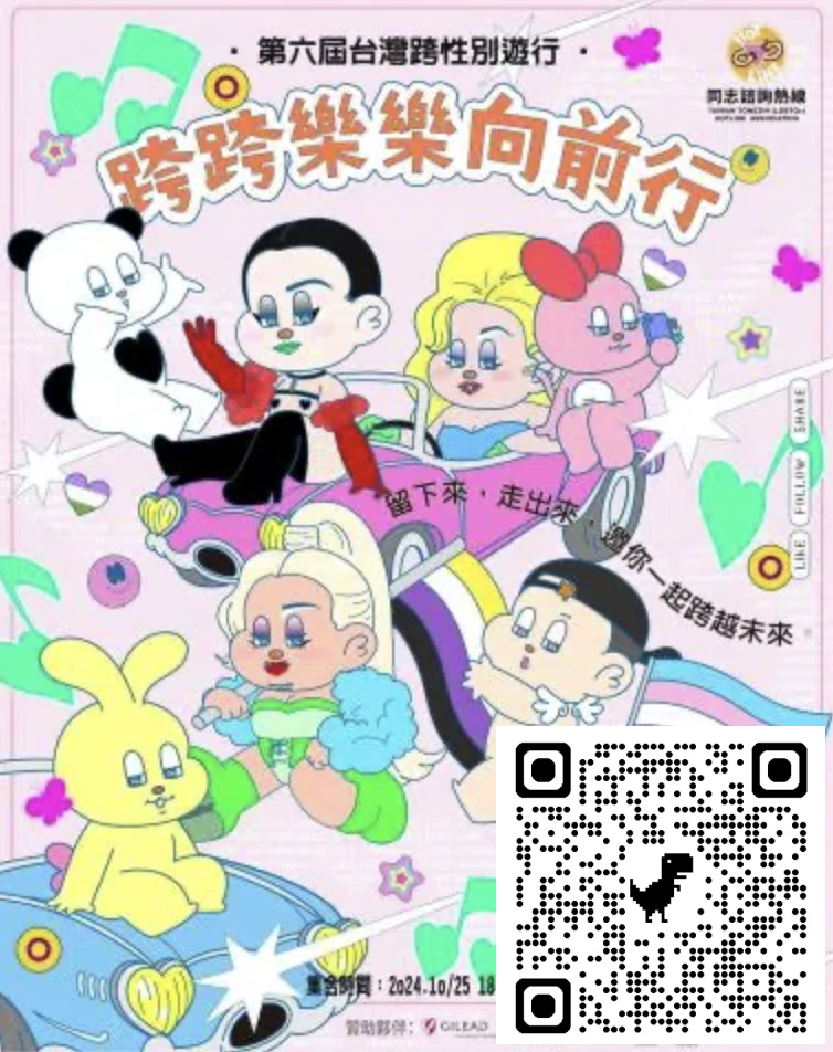 台湾跨性别游行自2019年首度举办,至今已迈入第6届,是亚洲少数以跨性别为主题的游行活动,今年的跨性别游行主题为“跨跨乐乐向前行:留下来,走出来,邀你一起跨越未来”,旨在邀请社会大众参与,透过游行展现对跨性别社群的支持,共同迈向性别平等的未来。