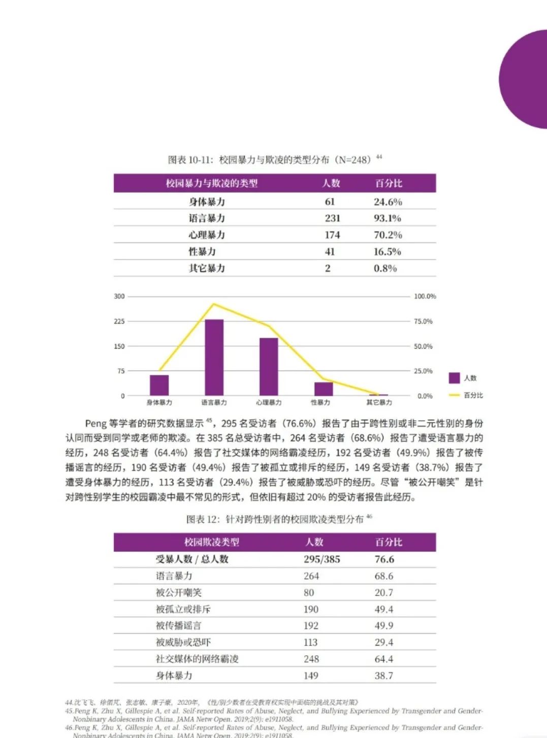 怀揣着“将经验归纳、提炼成案例,给更多服务提供者以参考和指引”的期待,我们开始筹备这本 《多元性别反暴力干预服务案例册》 。手册包括 「多元性别基本概念」 、 「四个案例服务过程及法律建议」 、 「个案实务重点议题解析」 、 「多元性别暴力背景资料阅读」 等章节内容。其中,手册所遴选的四个案例涵盖不同性倾向或性别认同的少数群体所遭受的原生家庭暴力、亲密关系暴力及校园欺凌,并通过关键词、危险及资源评估、案例干预分析、法律分析等多角度梳理,呈现了完整的介入过程。同时在 「延伸阅读」 专题,除了对SOGIE相关暴力进行了概念讨论,手册也通过数据图表对中国性/别少数群体遭遇到的暴力进行情境分类与分析,清晰展现多元性别群体的生存境遇。