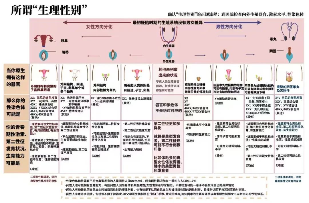 配图:所谓“生理性别”。事实上,就连“生理性别”也并非如反跨人士所愿那般是二元的、非男即女的。