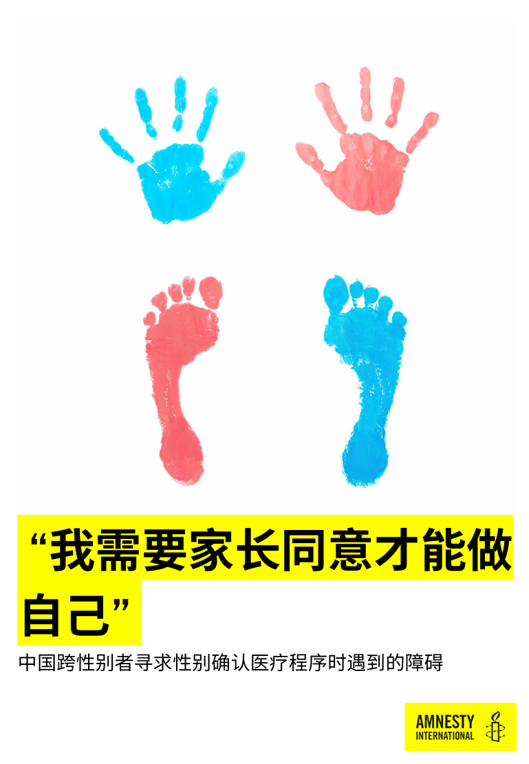 图为“我需要家长同意才能做自己”中国跨性别者寻求性别确认医疗程序时遇到的障碍封面(来源:国际特赦组织)