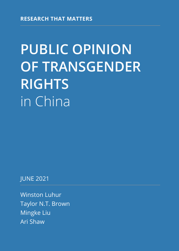 图为 PUBLIC OPINION OF TRANSGENDER RIGHTS in China 封面(来源:Williams Institute)